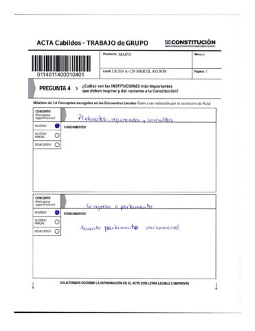 Acta Cabildos provinciales sobre trabajo en grupo Provincia de Maipo