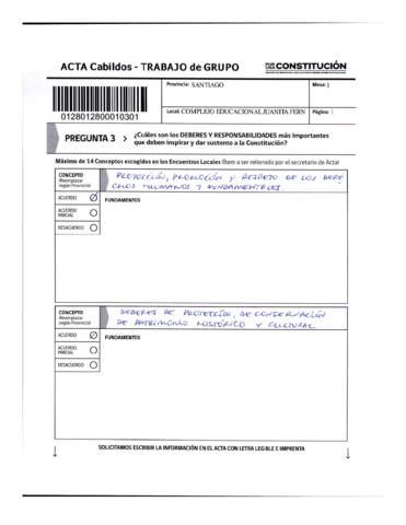 Acta de Cabildos provinciales. Trabajo en grupo perteneciente a la Provincia de Santiago (Recoleta), pregunta 3. Escasa profundización.