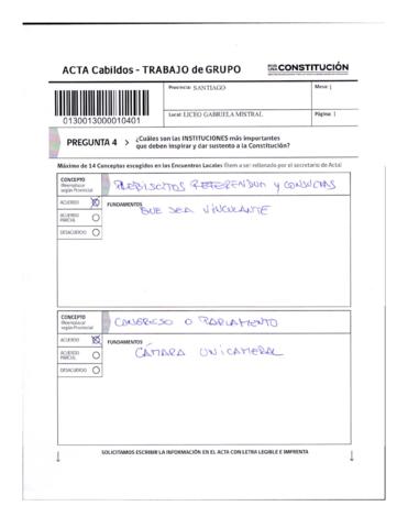 Acta Cabildos provinciales sobre trabajo en grupo Provincia de Santiago