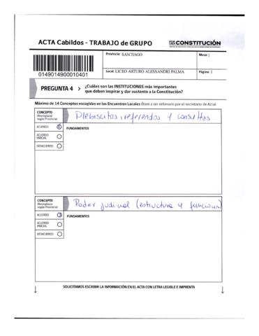 Acta de Cabildos provinciales. Trabajo en grupo perteneciente a la Provincia de Santiago (Providencia 2), pregunta 4. Desarrollo irregular.