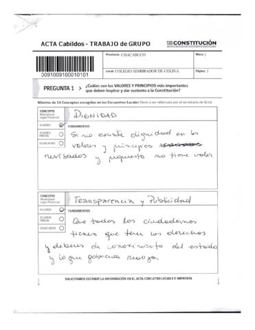 Acta de Cabildos provinciales. Trabajo en grupo perteneciente a la Provincia de Chacabuco. Documento medianamente trabajado.