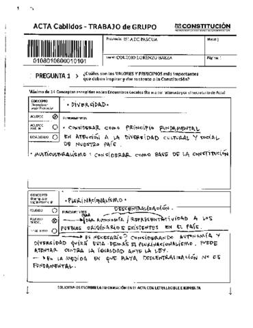 Acta de Cabildos provinciales. Trabajo en grupo perteneciente a la Provincia de Isla de Pascua. Buen trabajo.