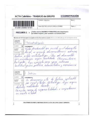 Acta de Cabildos provinciales. Trabajo en grupo perteneciente a la Provincia de Palena. Documento muy completo y ordenado.