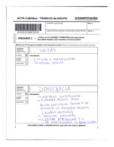 Acta de Cabildos provinciales. Trabajo en grupo perteneciente a la Provincia de Santiago (Santiago). Documento medianamente desarrollado.