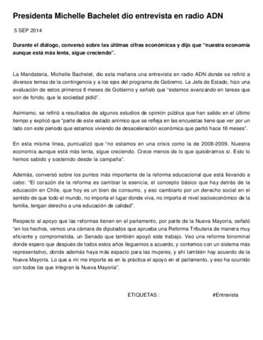 Presidenta Michelle Bachelet dio entrevista en radio ADN